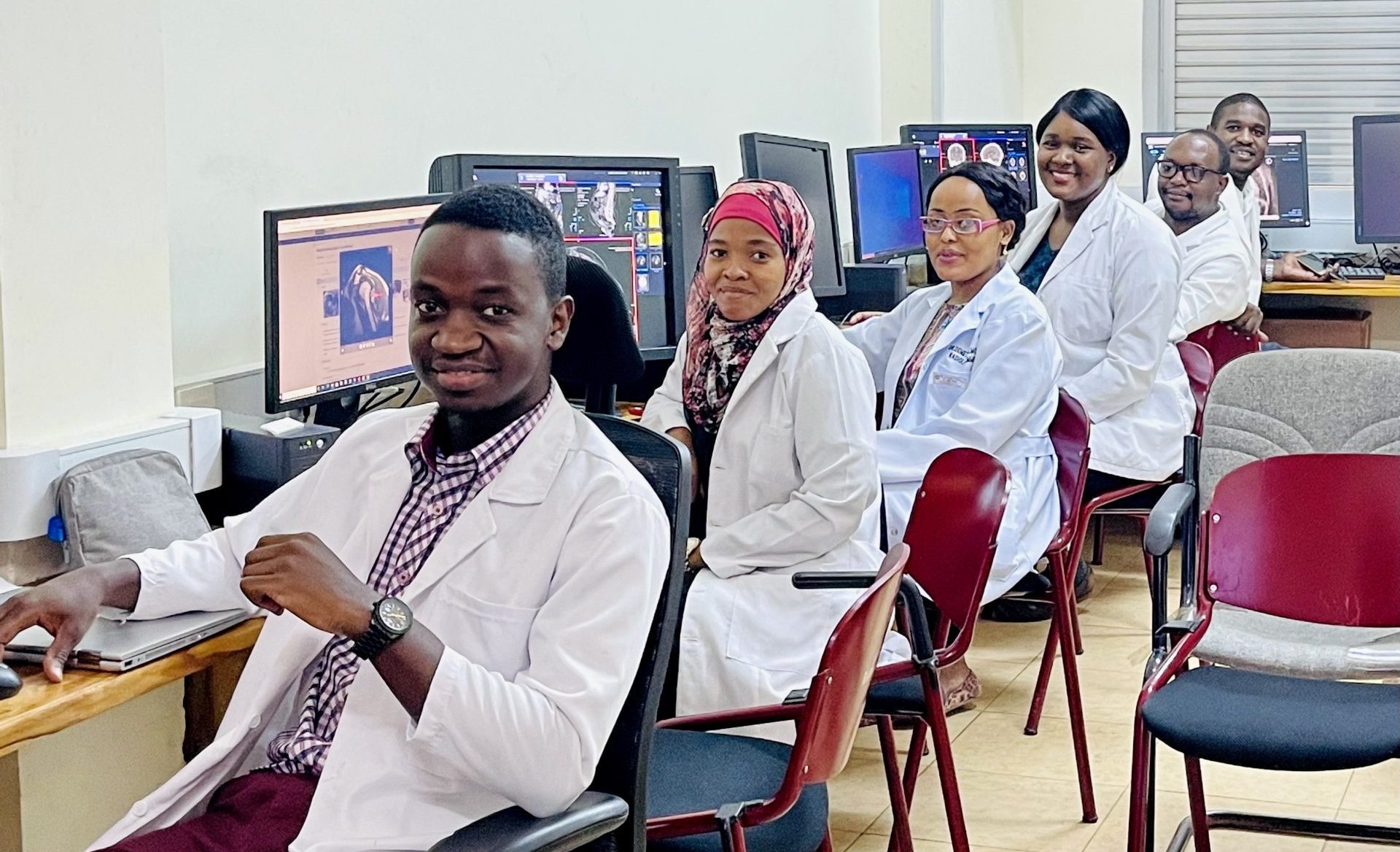 Radiology residents from KCMC at their new workstations