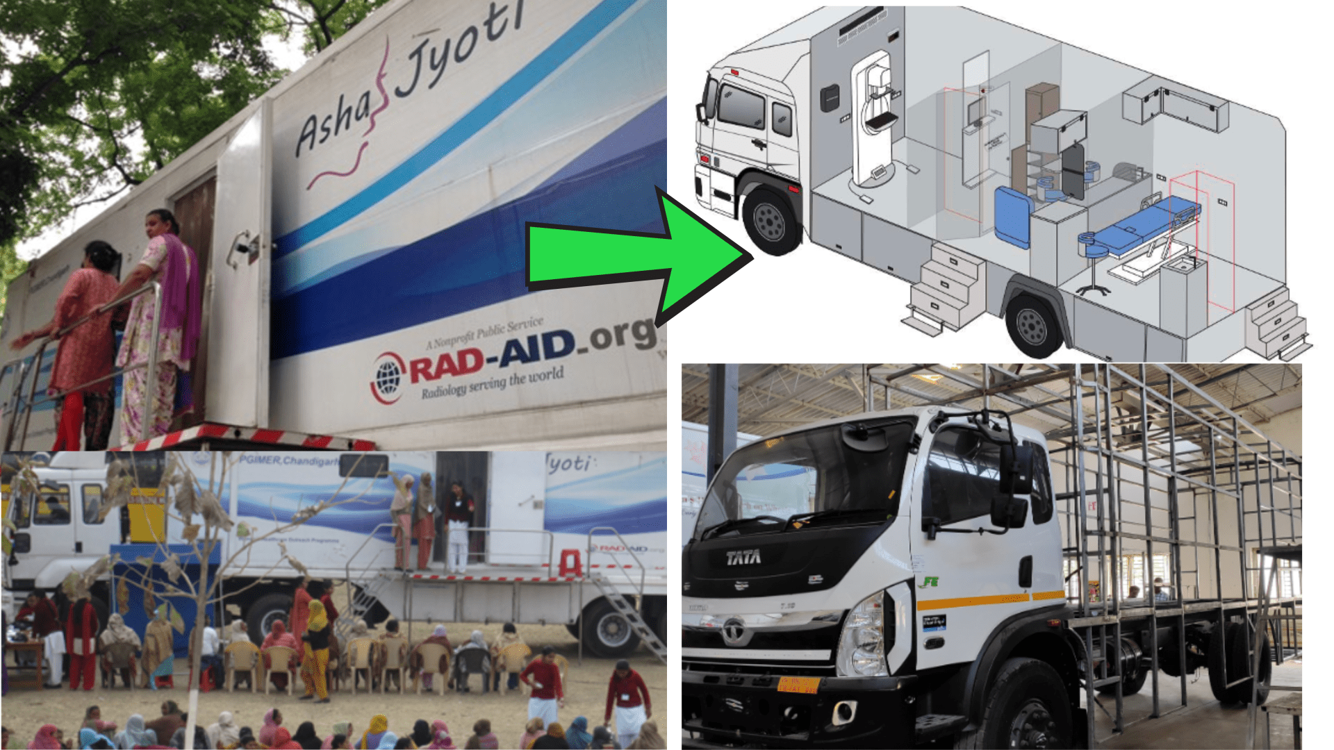 In 2024, RAD-AID partnered with NIMS University Rajasthan in Jaipur to launch Asha Jyoti 2 to expand mobile health with AI, chest-radiography for respiratory infections, mammography, and cervical cancer screening. The health vehicle for Asha Jyoti 2 is currently under construction (photo below), which we expect to launch and operate in Q3 2025.